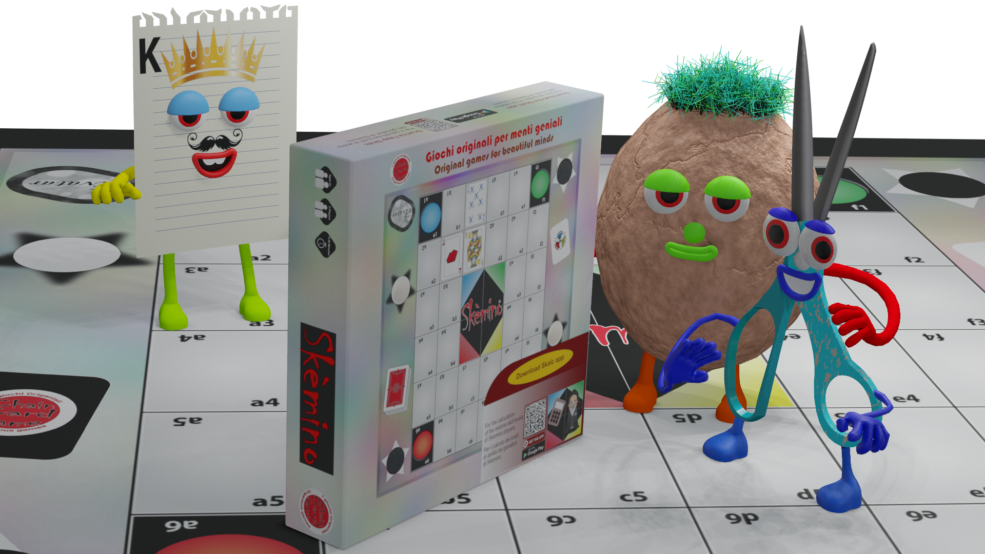 - ➤【LE ORIGINI】Skèmino è un gioco di strategia ispirato a tre illustri e antichi precedenti nella storia ludica: la Morra Cinese, gli scacchi e il domino.